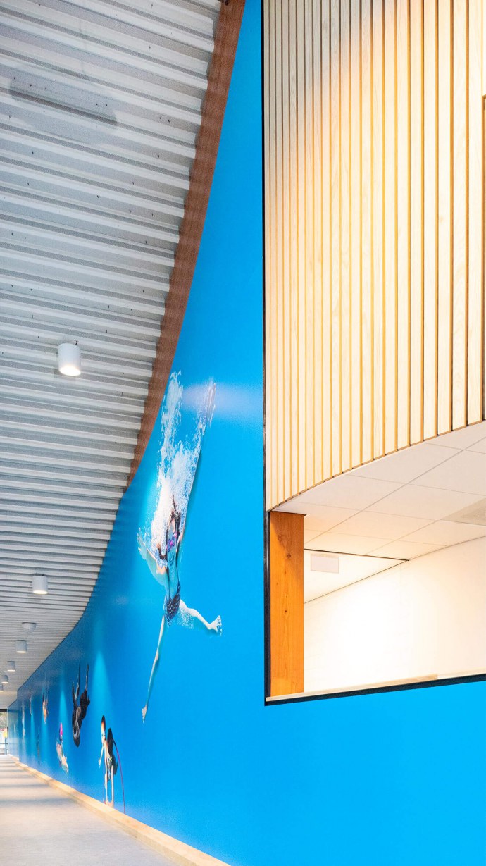 In de nieuwe entree komen kantoor / vergaderruimtes te liggen, kleedruimten voor mindervaliden en een verenigingsruimte. Onder de bestaande tribune worden kleedruimten gerealiseerd voor de zwemles. Het bestaande instructiebad wordt gerenoveerd en de bestaande kleedruimten en douches worden geheel vernieuwd en uitgebreid en de bestaande entree wordt omgebouwd tot kantoorruimte.