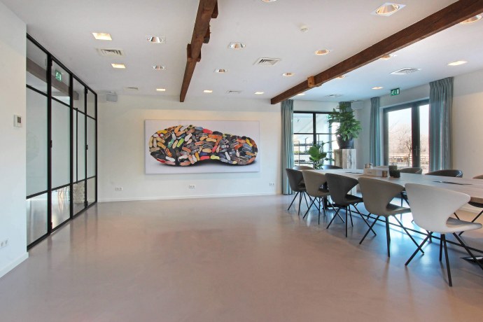 De vergaderaccommodatie kreeg de hoofdentree in de nieuwe zinken aanbouw, eveneens werd aan deze (zuid)zijde, het restaurant met zijn terras (grote glaspui voorzien van schuifpui) en de kleine vergaderruimte gesitueerd. In het hoofdgebouw kwam o.a. de grote vergaderruimte. Binnen bleven een aantal details gehandhaafd, waaronder de houten gebinten, de gemetselde muur (met een koppen en strekken verband), de varkensdeur en het inpandige stalraam.