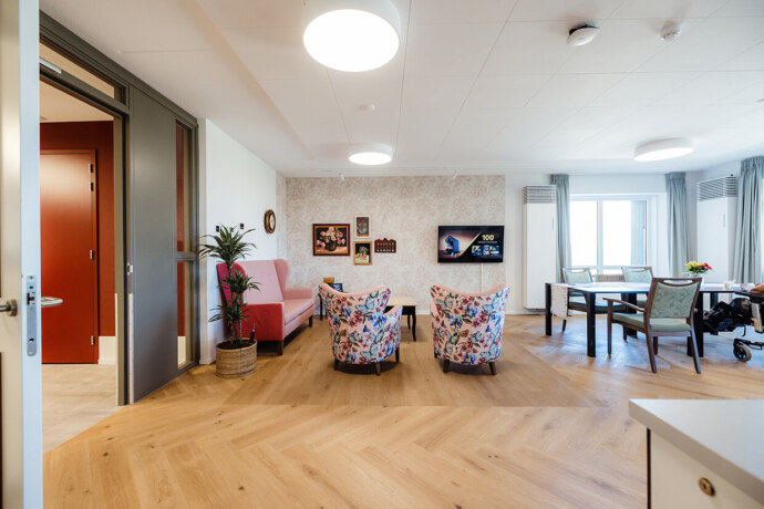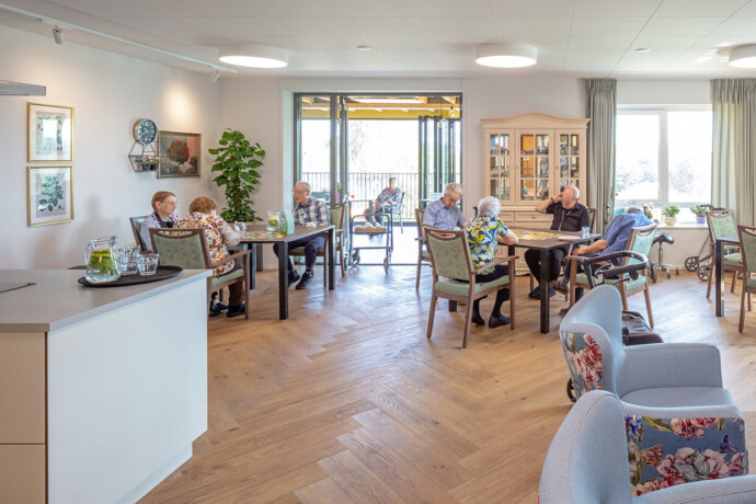 Borgerink Architecten heeft naast het exterieur ontwerp voor een wooncomplex voor ouderen met dementie ook het interieur ontwerp mogen maken voor Flora in opdracht van Zorggroep Almere.